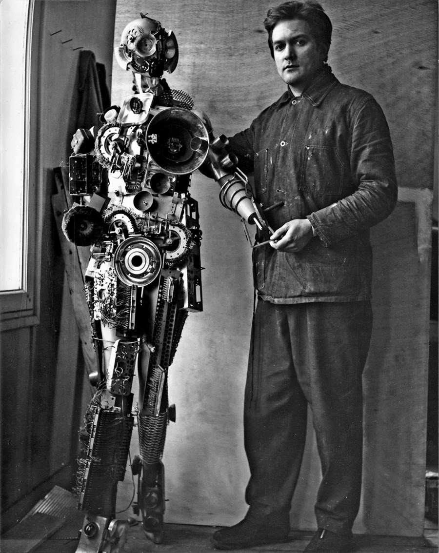 A few years after Duvivier's film, Erró left the assemblage technique behind, only to return to it briefly in the late 1990s. In 1964, he bought a camera and started shooting his own short films - once again including the assemblages as props. The montages such as Méca-Make-Up (1965-67), Grimaces (1964-67) and Mary Monster (1967) were created by selecting, cutting, adding and gathering passages and clips of film, in which he thematically confronted human with mechanics and beauty with the monstrous.
